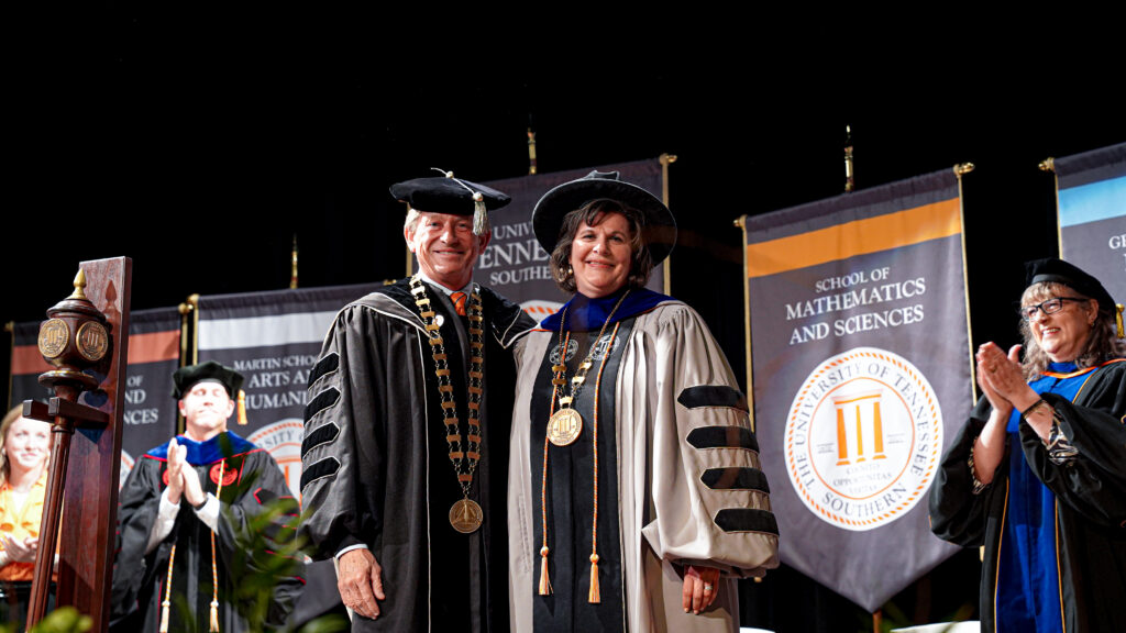 During the ceremony, UT System President Randy Boyd formally conferred the medallion of office, symbolizing Arnold’s authority, and responsibility as chancellor. Boyd emphasized the university’s growing importance as a driver of workforce development and opportunity in southern Middle Tennessee.